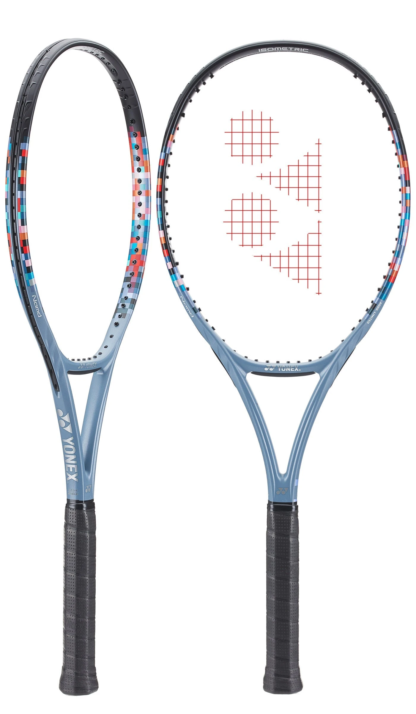 Introducing the VCORE 98 Limited! This racquet has the same specs as the flame red VCORE 98 (305) but it comes in an eye catching grey-blue cosmetic. Like the standard cosmetic version, the VCORE 98 Limited is perfect for intermediate and advanced players who want a spin-friendly racquet with great feel. With its relatively thin beam and 98in² head, this stick offers impressive accuracy on full swings. Like the standard red version, the VCORE 98 Limited has an open and spin-friendly 16×19 string pattern. To cut wind drag, Yonex has expanded the location of its Aero Fin grooves to include not just the upper hoop but also the lower portion of the head. This technology is complemented by an Aero Trench grommet system that submerges the grommets to further reduce wind resistance. The upshot of these technologies is easier acceleration, which will help you load the ball with pace and spin. The VCORE 98 Limited also gets updated with a material called Namd, which is a uniquely flexible graphite designed to increase frame torque, ball pocketing and spin. From the baseline this stick feels comfortably crisp on contact. It also feels a tad more solid than the VCORE 100. Full swings find their mark with ease, and there is more than enough spin to bring the ball down hard. At net, the VCORE 98 Limited feels fast and solid, with plenty of touch for dropping the ball short. On serve, there is enough spin to hit effective slices and kickers, and the high level of precision means you can swing for power. This racquet is an obvious choice for intermediate and advanced players who value speed, spin, precision and feel. The limited edition cosmetic makes it a great collectible.